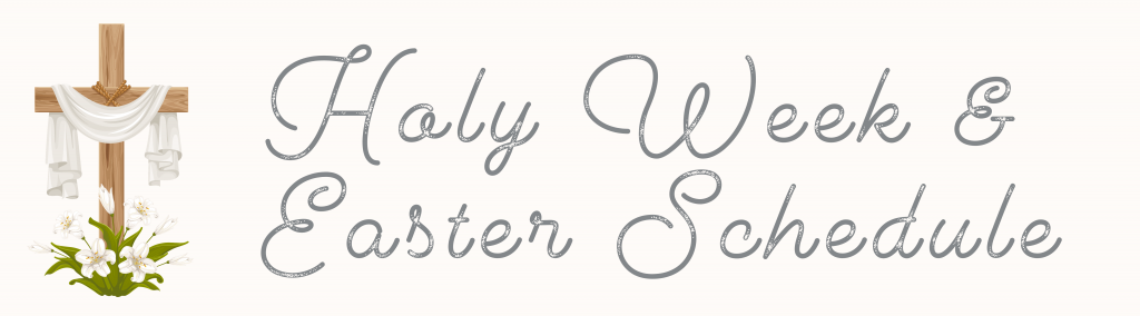 Holy Week and Easter Schedule | March 17, 2026 Palm Sunday 5:00 pm Vigil Mass on Saturday 7:30 am Mass 9:00 am Mass 10:45 am Mass 5:00 pm MassMonday of Holy Week 8:30 am... Read more