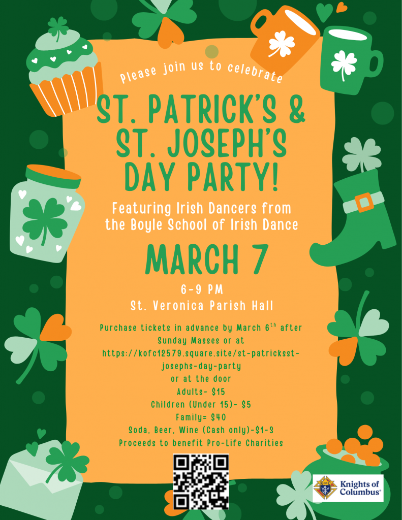 Purchase tickets here: St. Patrick's/St. Joseph's Day Party | St. Veronica Knights of Columbus Navigation Selections